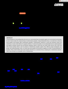 Social Equality Is Rather Threatening Than Normative to Authoritarians.